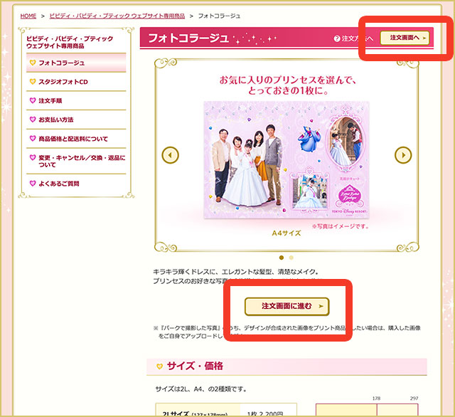 「パークで撮影された写真」のタブを押します。すると選択可能な写真が表示されますので、その中から注文したいものを選択してください。